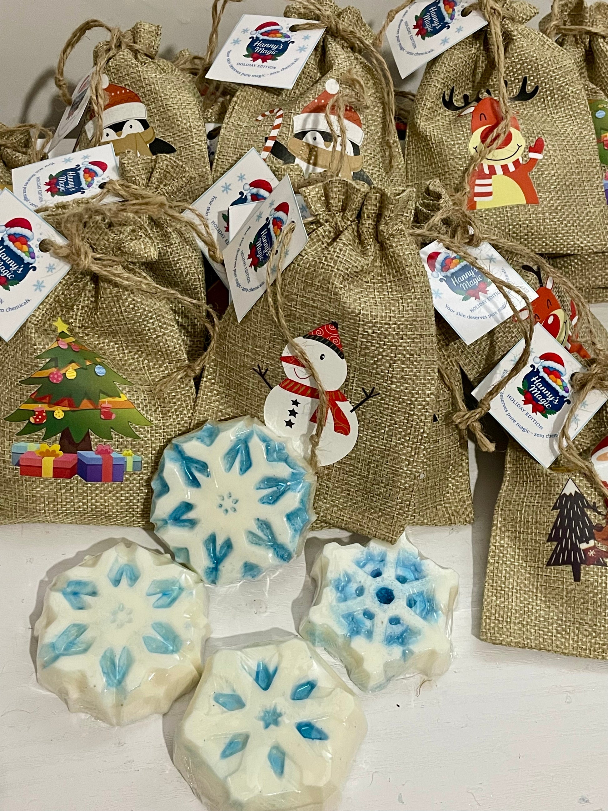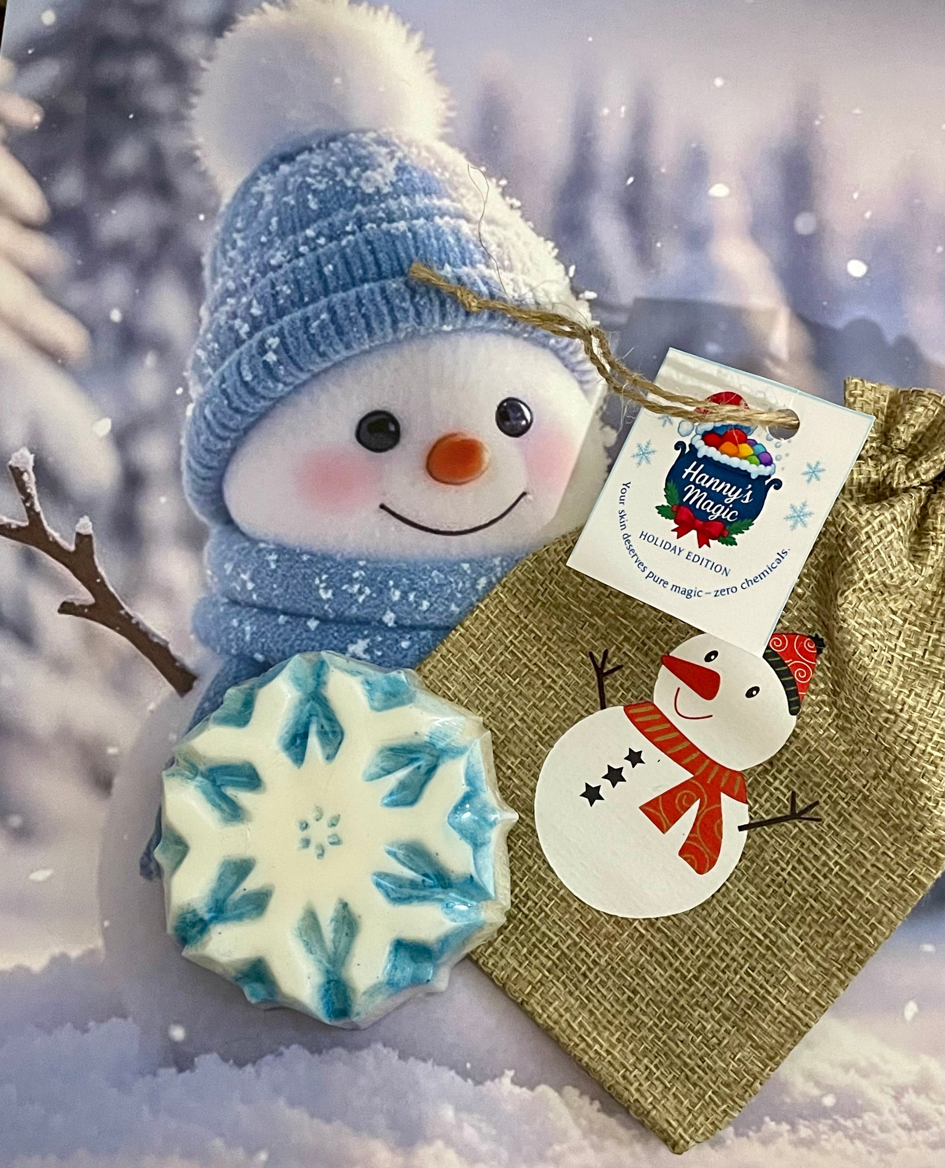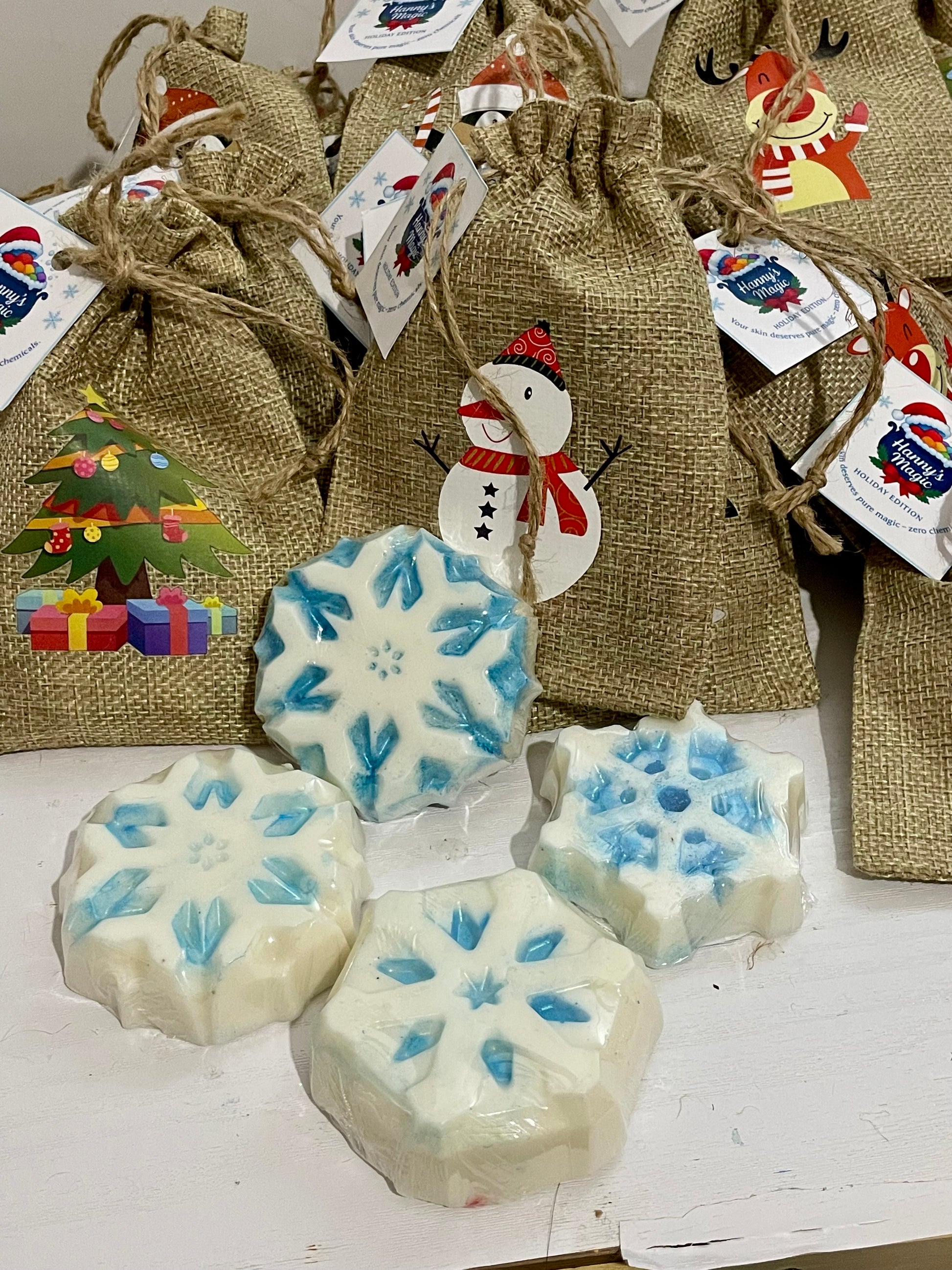 Bring winter magic to your skin with our Frozen Magic Snowflake — a handcrafted holiday soap made with pure honey and sweet almond oil.